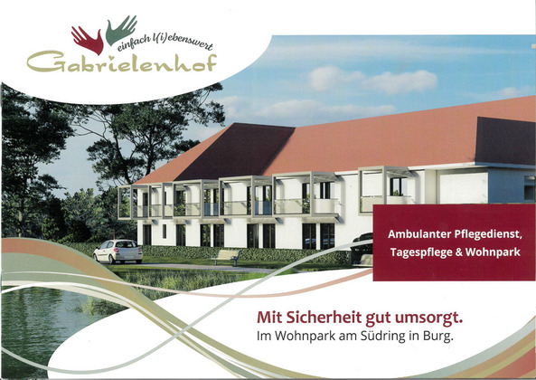 Alternative zum Pflegeheim- Gabrielenhof in Burg Objektbeschreibung: -Wohnpark mit 7000 qm großem Areal -Insgesamt 35 Wohneinheiten -30 x 1-Zimmer Appartments -Friseur unter einem Dach -2 Aufzüge, 3 Treppenaufgänge -auf die...