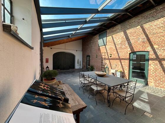 Sehr schöner Raum in denkmalgeschützter Hofanlage: geeignet als Galerie, Atelier, Büro... Blick in den Garten und überdachten Innenhof, ruhige Atmosphäre, Autobahn in 2 km Entfernung, Parkplätze sind vorhanden