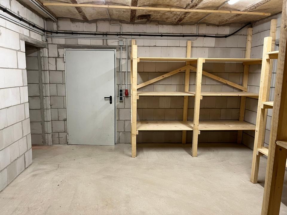 Biete einen Raum im EG von 19,0m² Nutzfläche zur Miete an. Ebenerdig zu erreichen. Sicher abschließbar. Jederzeit gut zu erreichen. Regale vorhanden. Innerorts. KSL-Wände, Stb.-Decke und Sohle. Monatl. Miete: 115.-EU....