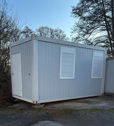 Vermietet wird ein Bürocontainer, der auch als Lagerraum genutzt werden kann.