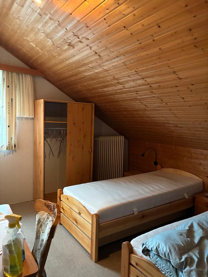 Das Dachzimmer mit Dusche und WC ist ab 1.12.2025 zu besichtigen bzw. frei für einen neuen Bewohner. 2 Treppen hoch. Die Küche befindet sich im ersten Stock. Diese ist voll ausgestattet.