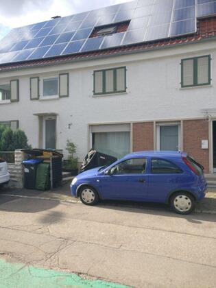 Es handelt sich um ein älteres Doppelhaus, letzte Renovierung 2024, bestehend aus 5 Zimmern mit einer großen Wohnküche mit neuwertigen Geräten, wie Spülmaschine, Elektroherd mit Ceran Kochfeld, Backofen, Kühl...