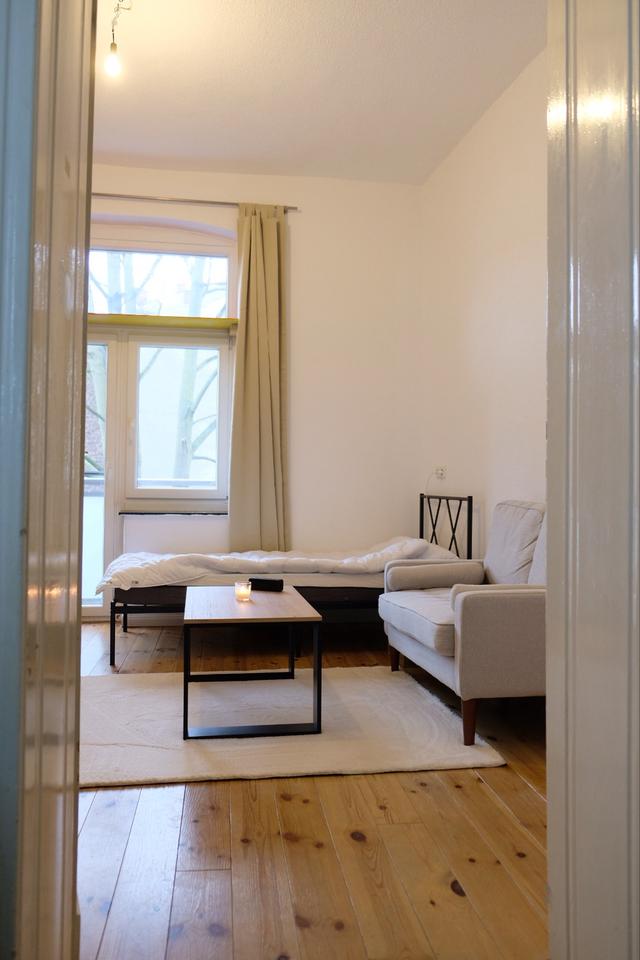 Altbauwohnung 1. Etage mit 3,25m hohen Decken, ab sofort beziehbereit. Die Zimmer sind voll ausgestattet, einfach Koffer und Bettwäsche mitnehmen und einziehen.