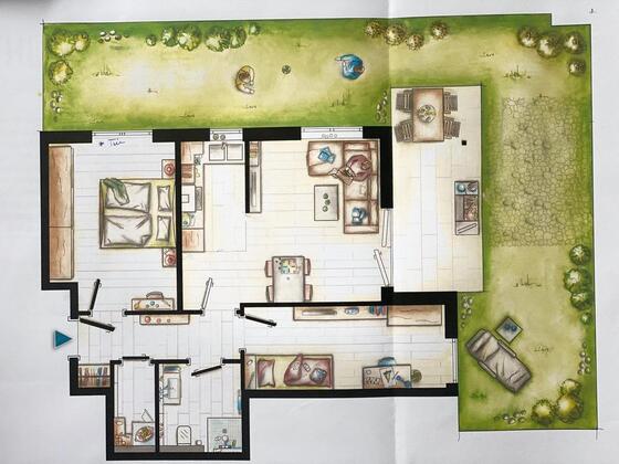 In dem elf Parteien-Haus ist eine schöne Drei-Zimmer Wohnung mit Garten und zwei Stellplätzen (einer in der Tiefgarage) zu vermieten. Das Haus ist ein Neubau von 2020 mit Tiefgarage...