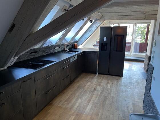 Wir vermieten unsere seltene und traumhafte Wohnung mit Hauscharakter auf drei Ebenen in zentraler Lage mit Garten, Garage und großzügigem Raumgefühl.