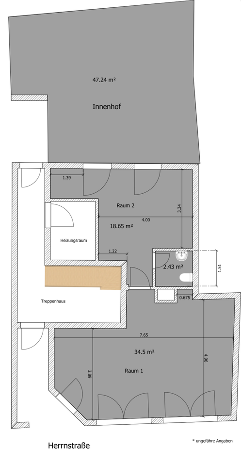 Die Einheit umfasst ca. 55 m² aufgeteilt in 2 Räumen.