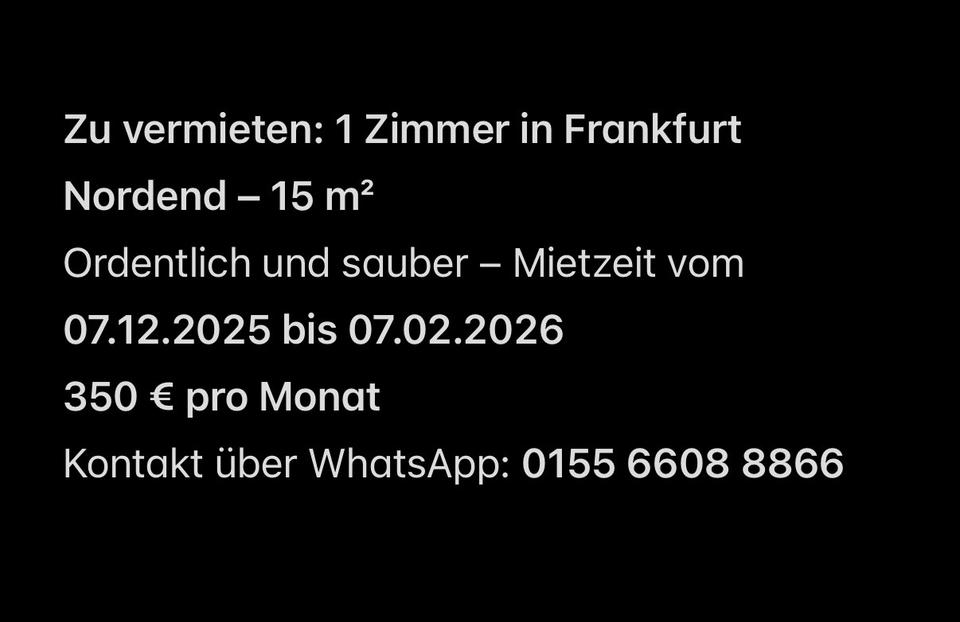 5 min Laufweg zur Friedberger Platz (Tram 12) Nähe Zentrum Ab 07.12 bis 07.02 zu vermieten Für weitere Infos und Bilder gerne Kontakt per Whatsapp unter 0155 6608 8866