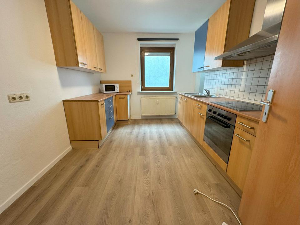 Die Wohnung verfügt über eine voll ausgestattete Einbauküche mit Spülmaschine, Kühlschrank und Waschmaschine.