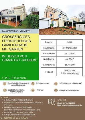 Mehr zum Angebot Freistehendes Familienhaus langfristig zu vermieten in Frankfurt-Riedberg: