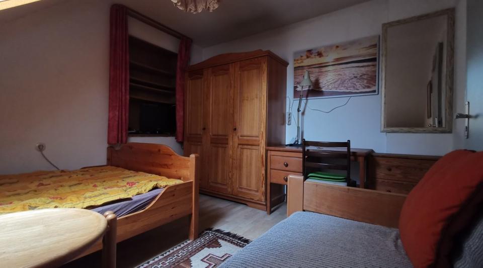 Kleines Gä¤stezimmer im 2. Stock, mit Schräge. Auf derselben Etage befindet sich ein zweites Zimmer und das Bad, die Toilette ist eine Etage tiefer. Dort ist auch eine eingerichtete Küche...