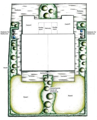 Geräumige, helle Doppelhaushälfte mit großem Wohn- und Esszimmer, Küche, 3 Schlafzimmern, hochwertigem Badezimmer mit Badewanne und begehbarer Dusche, Gäste-WC, Hauswirtschaftsraum, Carport mit Geräteraum für Fahrräder etc., Terrasse und eigenem Garten.