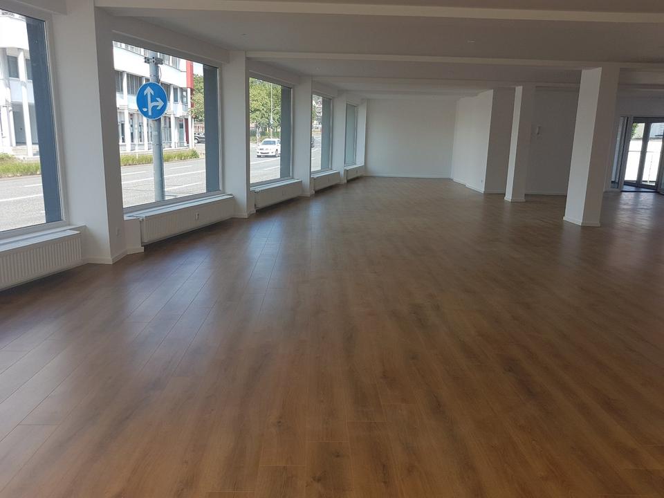 Die helle Gewerbefläche liegt in topzentraler Lage in der Innenstadt und an der Hauptverkehrsstraße/Stadtring (Reichsstraße) von Bad Hersfeld gegenüber der Sparkasse.