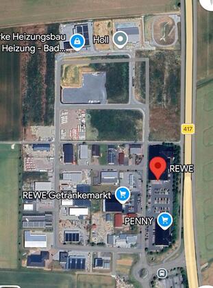 Auf dem Gewerbegrundstück sind ca 60000 qm2 groß und ist mit Lebensmittelngeschäfte und Handwerker