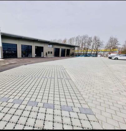 • u2705 Hallenfläche: ca. 300 m² • u2705 2 große Sektionaltore je 4,50 m x 4,50 m (ideal für LKW, Baumaschinen, Krane etc.) • u2705 Ölabscheider vorhanden • u2705 Starkstromanschluss • u2705 Sanitärbereich (WC) • u2705 Separater Büro-Pavillon mit Glasfront • u2705 Neubau...