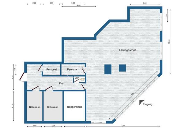 Mehr zum Angebot Gewerberäume mit 2 Kühlzellen, z.B. Fleischerei. Gastro. 54m² Lager mietfrei.: