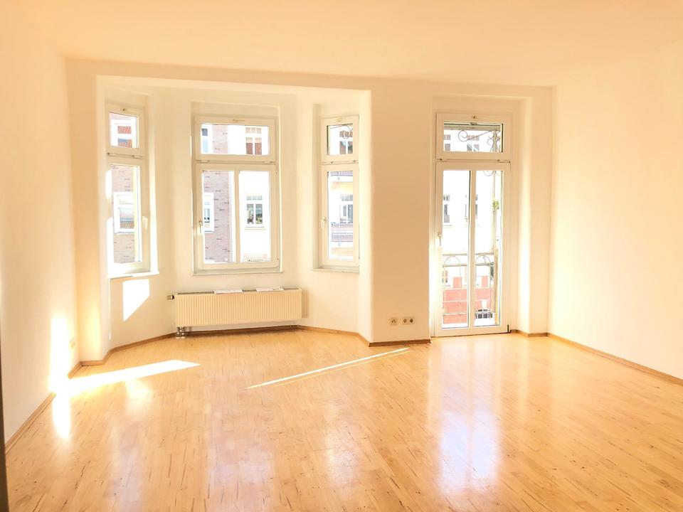 Schöne 3-Raumwohnung im 1.OG. Die helle Wohnung ist sehr hochwertig ausgestattet mit Parkett und Fliesenböden und weißen Stiltüren. Es gibt ein Familienbad mit Badewanne und Fenster. Die Wandbeläge des Bades sind helle Fliesen,...