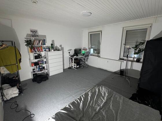 Ich vermiete mein großes und helles WG-Zimmer. Das Zimmer ist vollständig möbliert und bietet viel Platz zum Wohnen und Arbeiten.