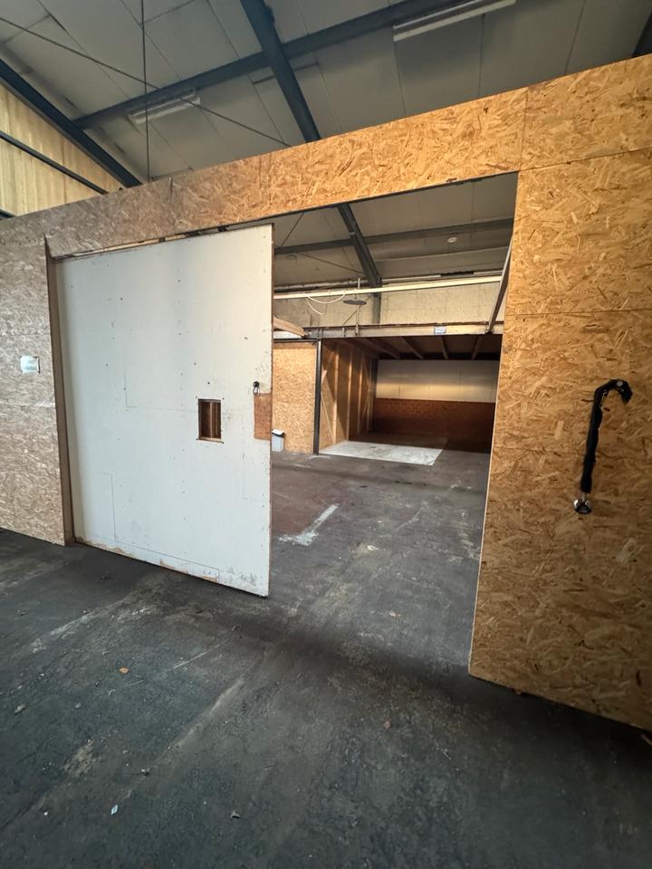 Zur Vermietung steht ein Hallenabteil für privat oder gewerbliche Nutzung. Sie hat ca 150 qm mit einer großen Fläche auf der 1.Etage. Strom ist im Preis miteinbegriffen.