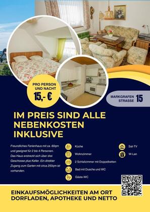 Dieses gemütliche Ferienhaus ist ca. 60qm groß und geeignet für 2 bis 4 Personen. Das Haus erstreckt sich über drei Geschosse plus Keller. Ein direkter Zugang zum Garten mit circa 250qm...