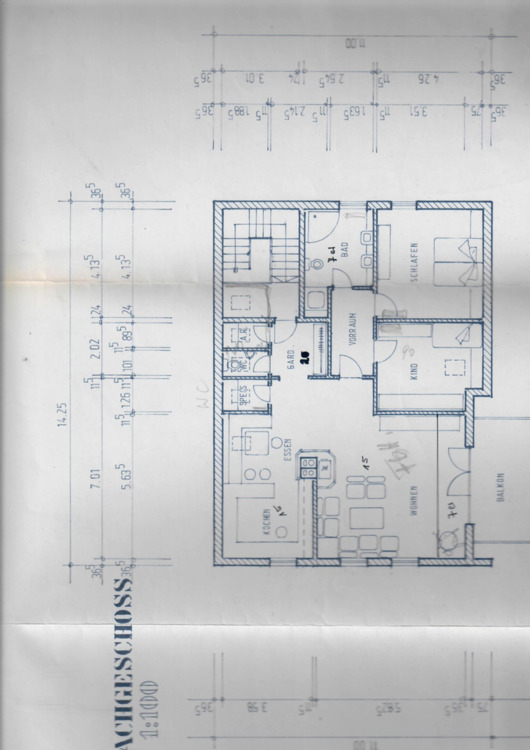 Helldurchflutete Dachgeschoßwohnung mit sehr vielen Fenstern /Dachfenstern im 1. Stock eines 3-Familienhauses. Wohnzimmer ca. 35 QM mit Zugang auf den großen Balkon, Küche mit Essecke, grosses Schlafzimmer und Kinderzimmer oder Büro, Bad...