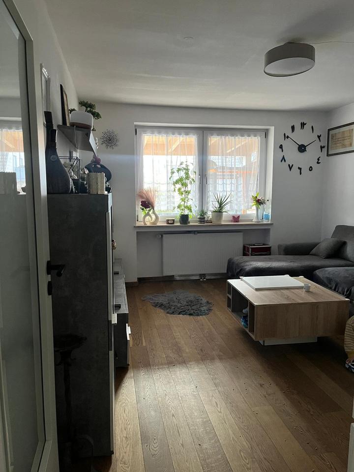 Helle 2019 auf Neubaustandard renovierte Erdgeschoßwohnung mit Echtholzparkettboden, 2 Zimmer, Küche incl Einbauküche, Bad, Vorratskeller, zusätzlich 1 Zimmer für Wohnzwecke geeignet im Keller, Garage, Geräteschuppen, eigener Garten auf der Südseite.