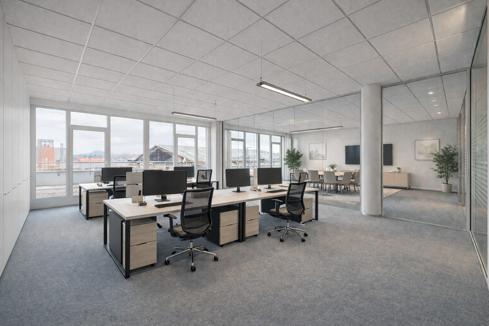 Helle und moderne Büro- Praxisfläche mit großer Dachterrasse