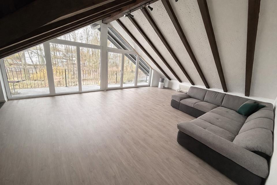 Objektbeschreibung Ab April 2026 steht diese frisch renovierte Dachgeschosswohnung in einem familiären Zweifamilienhaus zur Vermietung. Die Wohnung bietet ca. 150 m² Wohnfläche und einen großen Abstellraum. Sie besticht durch helle Räume,...