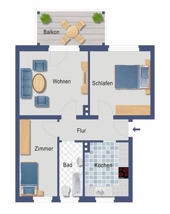 Mehr zum Angebot Helle 3-Zimmer-Erdgeschosswohnung in ruhiger Lage!: