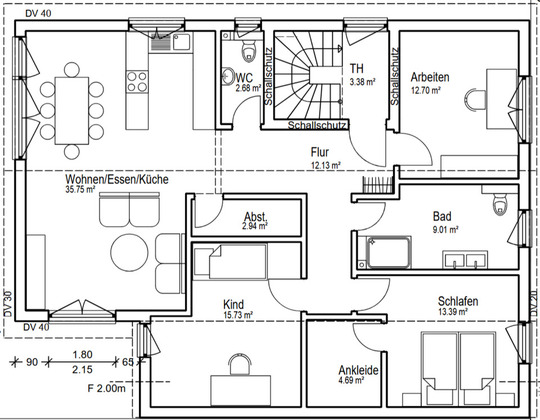 Zimmer: Schlafzimmer, Kinderzimmer, Wohn-, Ess-, Küchenbereich, Bad, Gäste-WC, Büro, Abstell-/Vorratsraum. Aufteilung ist dem Grundriss zu entnehmen. Dachboden Mitbenutzung...