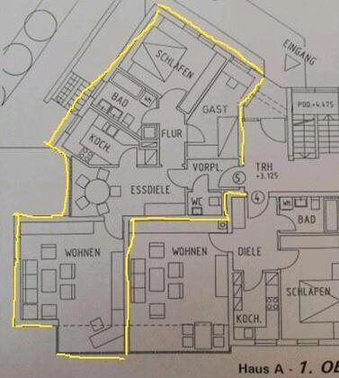 Aufgrund des Grundrisses/Zimmeraufteilung ist die Wohnung nur für Einzelvermietung oder Paare oder Familien mit...