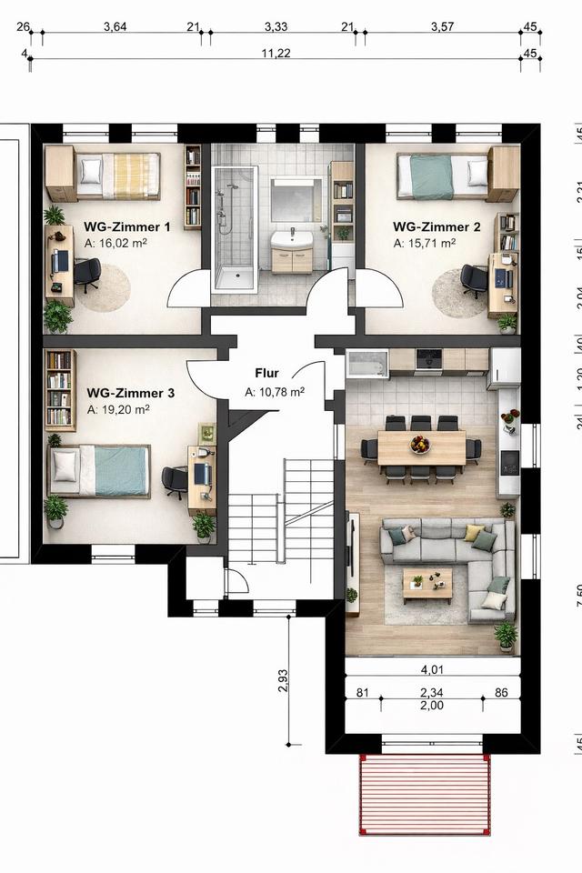Mehr zum Angebot Hochwertige 3er-Studenten-WG (105 m2):
