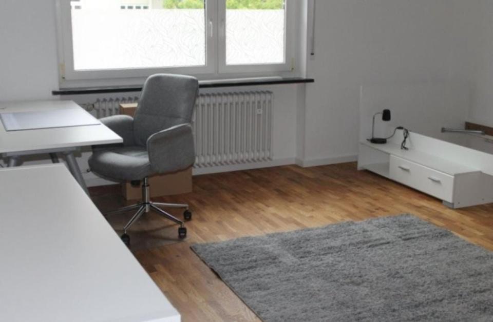 Das Zimmer ist das größte der drei in der Wohnung. Mit ca. 4,5 * 5 Metern hat man genügend Platz, sich hier wohlzufühlen. Es ist möbliert mit Schreibtisch und Stuhl,...
