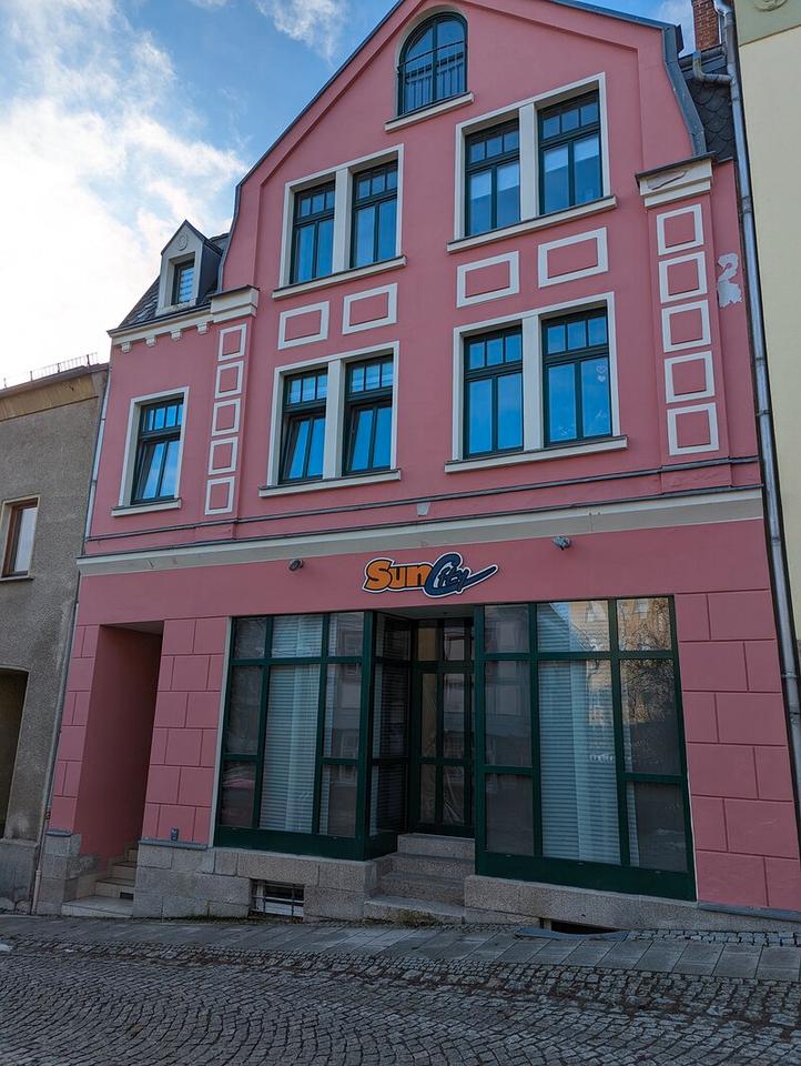 Es handelt sich um ein typisches Stadthaus von Treuen. Im Erdgeschoss befindet sich die Gewerbeeinheit, welche bisher als Sonnenstudio genutzt wurde. In den übrigen Etagen sind Wohnungen untergebracht.