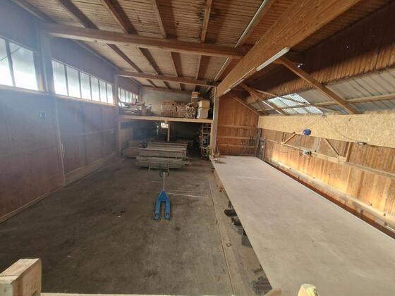 Kalthalle auf 2 Ebenen mit großen Toren. Die obere Ebene mit Holzboden hat eine Fläche von ca 267 m² mit zwei...