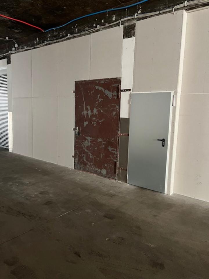 Lagerhalle mit Stahltüre, Türe 1,5 Meter breit und 2,2 Meter hoch. Mit Motorrad, Gabelstapler, Handhubwagen befahrbar. Es kann zum Ein- und Ausladen mit max Sprinter bis unmittelbar vor den Eingang...