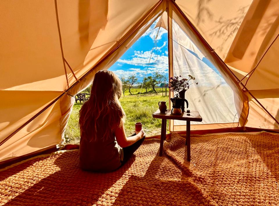 Event-Location Clamping-Zelt auf Lebenshof für Rinder zu vermieten: - Perfekt für Frauenkreise, Yoga, Meditations- und Achtsamkeitsretreats, Kreativkurse, Vorträge, Musiksessions etc. - Zelt steht im Grünen, ruhige Lage mit Blick auf Rinderweide - 38 Quadratmeter...