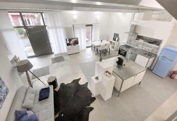 Dieses großzügige Atelier-Apartment mit ca. 90 qm auf zwei Ebenen kann Ihnen als Kurzzeit- oder Übergangs-Wohnung dienen. Lässiger Style mit Sicht-Estrich und komplett eingerichtet mit Allem, was Sie für den täglichen...