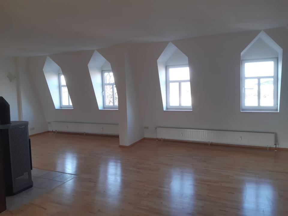 Schöne Maisonettewohnung mit 2 Schlafzimmer, 2 Bäder im unteren Geschoss und großem Wohnbereich mit Kaminofen und offener, geräumiger Küche im Dachgeschoss, sucht ab Mai 2026 neue Mieter. Die Küche auf...