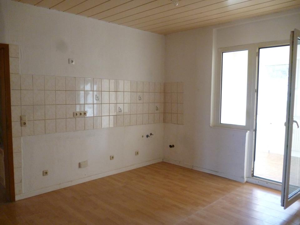 große Wohnküche, kleines Bad mit Toilette, Waschbecken und Dusche,