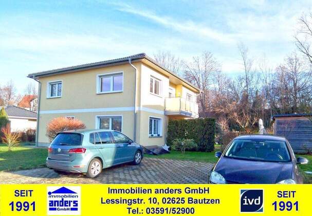 Mehr zum Angebot Moderne 3-Raum-Wohnung mit Süd-Balkon - Bad mit Wanne und Dusche - 2 PKW-Stellplätze - Gartengrundstück - nahe Bautzen:
