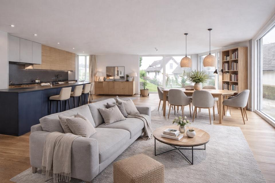 Der offene Wohn- und Essbereich bildet das Herzstück der Wohnung und bietet viel...