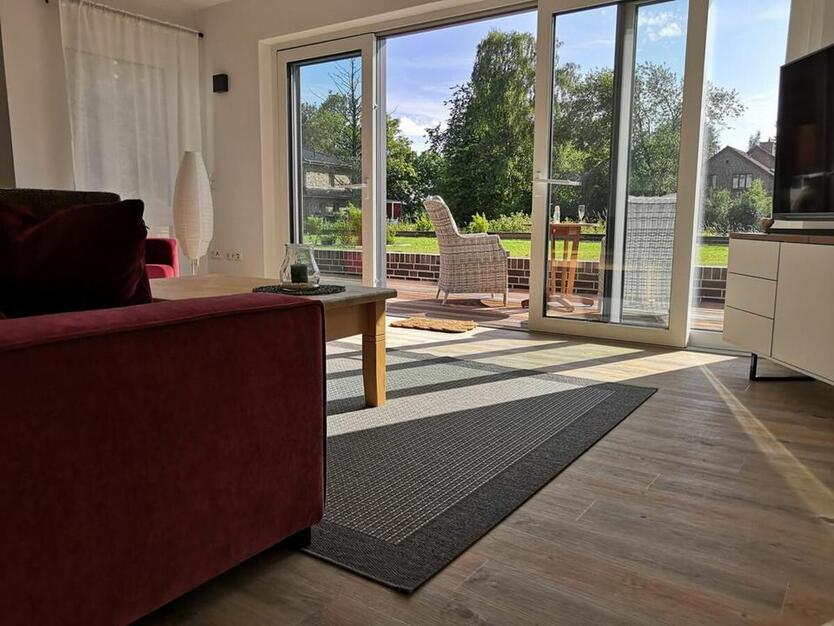 Die lichtdurchflutete und hochwertig eingerichtete, vollständig möblierte Neubau-Wohnung befindet sich in ruhiger Lage am Ems-Jade-Kanal. Die Wohnung im Erdgeschoss verfügt über ein 69 m² großes Wohnzimmer mit integrierter Einbauküche und Essbereich und Zugang...