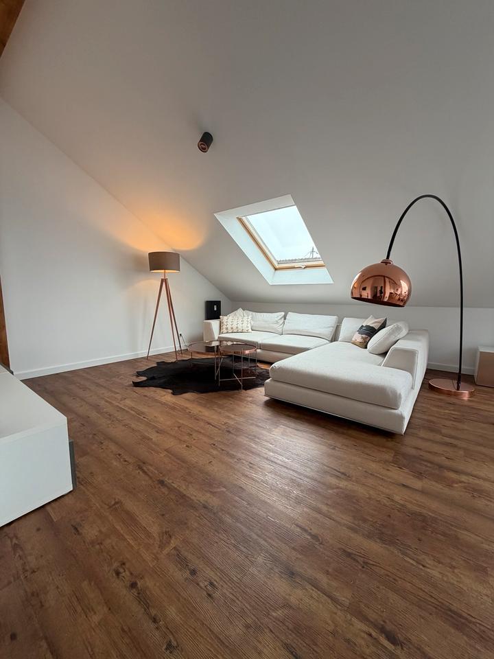 Modern möblierte 2,5-Zimmer DG-Wohnung mit vier Meter hohen Giebeln, offenem Gebälk, Dachterrasse und schönem Blick in ruhiger, aber sehr zentraler Wohnlage mitten in der Böblinger Innenstadt. Mit privatem Parkplatz vor...