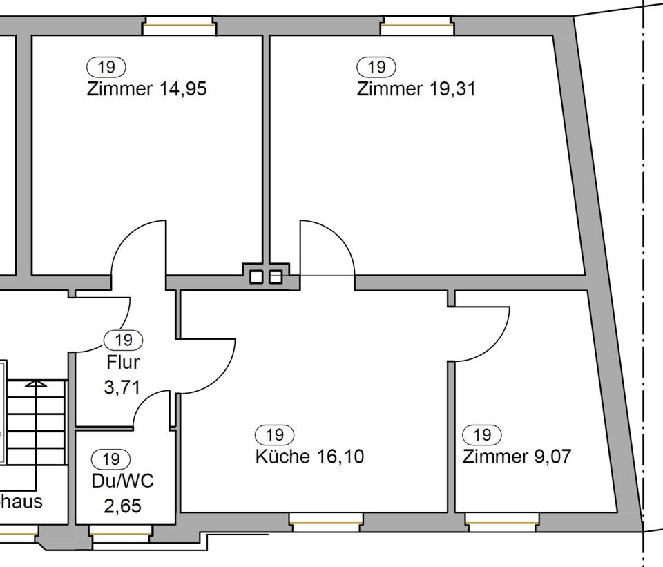 Es handelt sich um eine 3-Zimmer-Wohnung. Drei Zimmer werden an unterschiedliche Parteien vermietet. Küche, Flur, Bad und Kellerraum befinden sich in...