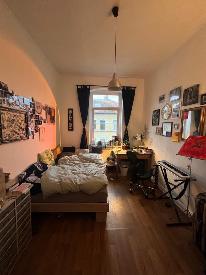 Das Zimmer ist ca. 15m2 groß, hat ein großes Fenster zur Südwestseite (wie alle Fenster in der Wohnung), sodass besonders nachmittags sehr schönes Licht hereinfällt. Ich (Lena)...