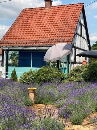 Für 1-7 Personen: Gemütliches, freistehendes, vollmöbliertes Ferienhaus/Fachwerkhaus mit Sauna, Wintergarten und Terrasse in absolut ruhiger Wohnlage, ca. 100 Meter bis zum Waldrand.