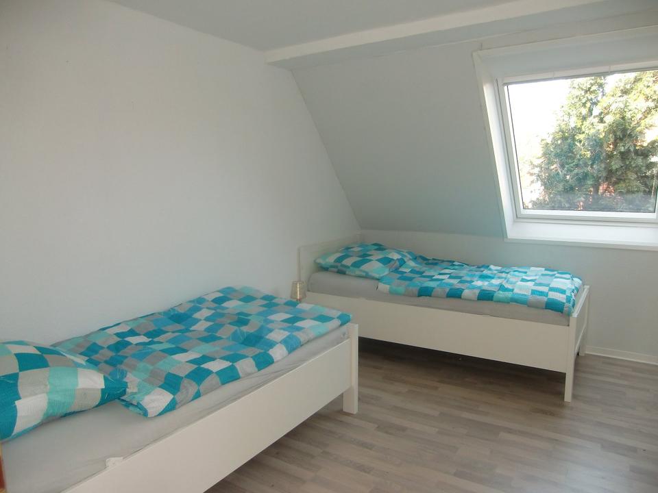 Die Oberwohnung verfügt über eine voll ausgestattete Küche mit Essbereich, 4 Schlafzimmer ( 2 DZ, 2 EZ ), Wohnzimmer, Badezimmer