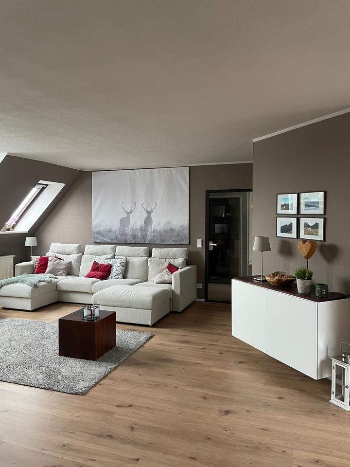 Wir suchen für unsere außergewöhnlich geschnittene Dachgeschosswohnung einen Nachmieter. Supermarkt, Apotheke, Bushaltestelle, Kita und Schule sind fussläufig erreichbar. Alles weitere gern in einem persönlichen Gespräch oder bei einer Besichtigung.