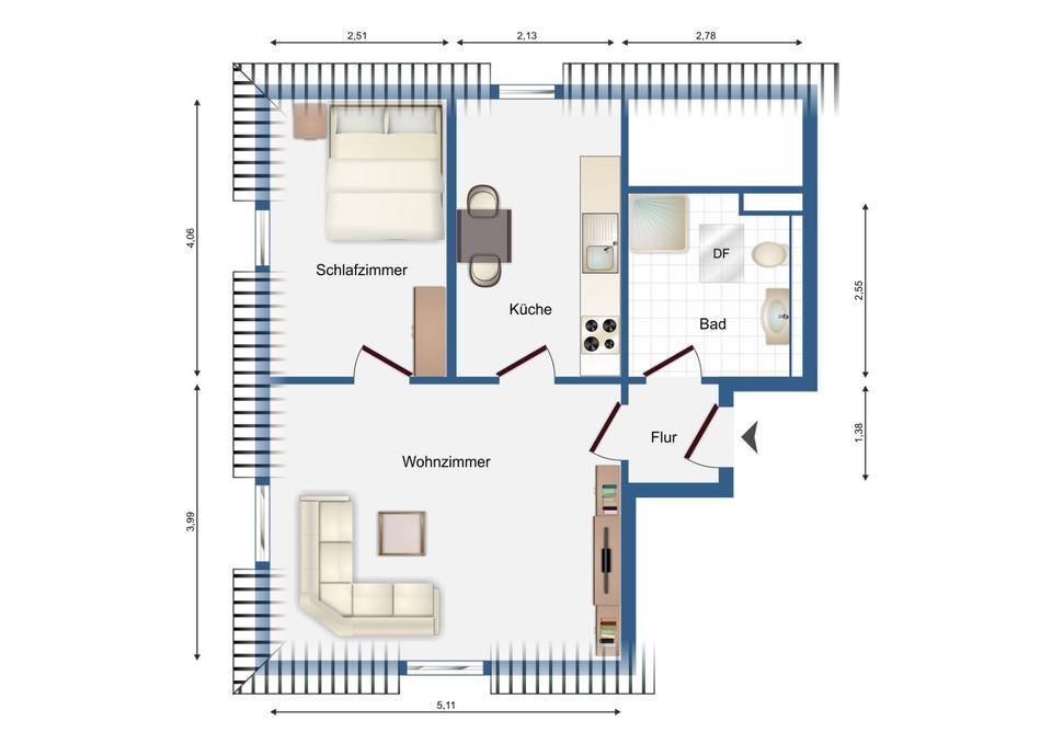 Mehr zum Angebot Neu! Möblierte 2 Zimmer Wohnung mit Einbauküche zu vermieten!: