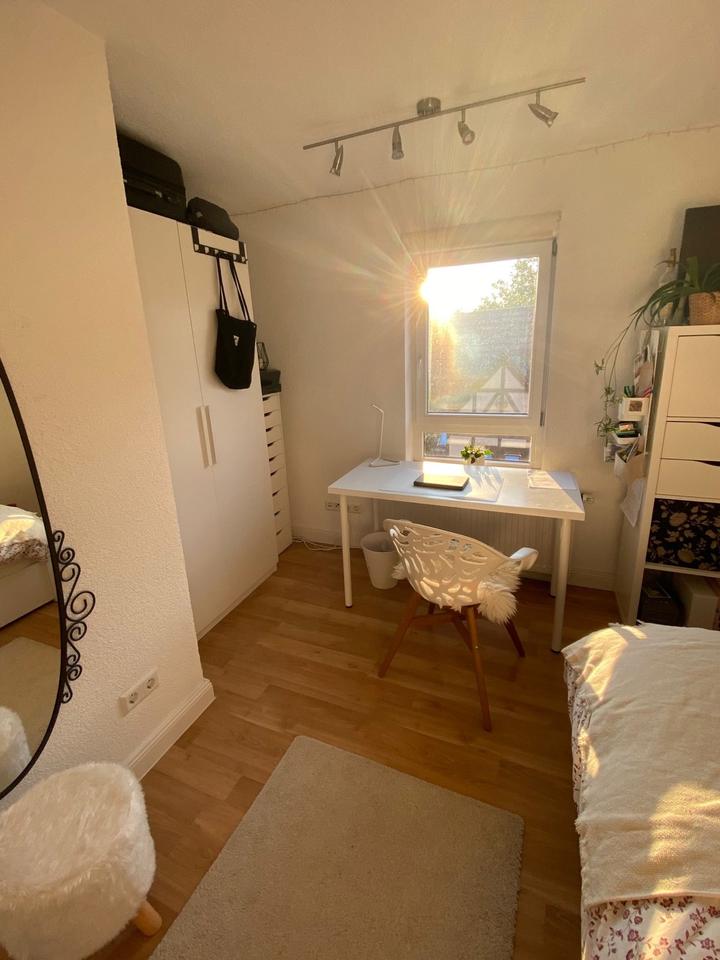 Das Zimmer ist ca. 12 m2 groß, schön hell und praktisch geschnitten. Du bekommst es unmöbliert, kannst es also ganz nach deinem Style einrichten.